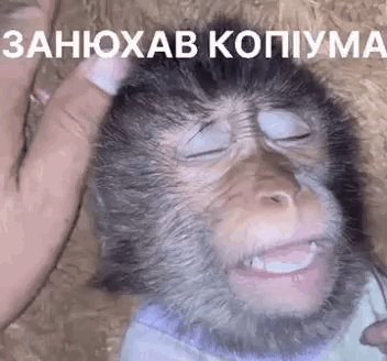 Dazed monkey after sniffing copium, with a hand gently petting its head.