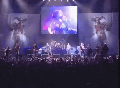 Russian punk rock band Korol i Shut performing live on stage with members Knyaz and Gorshok.