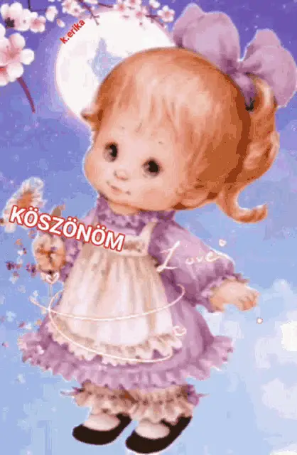 An animated character from JustVidman smiles and displays the Hungarian word 'KÖSSZ!' (Thanks!).