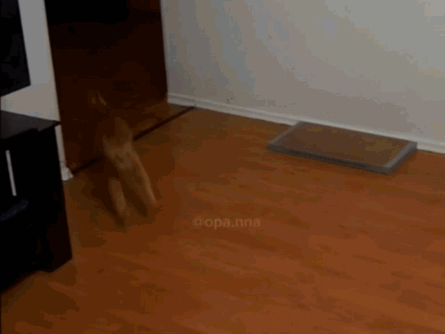 Кот Артём, an orange cat, is excited and looking directly at the camera while resting on a grey couch.