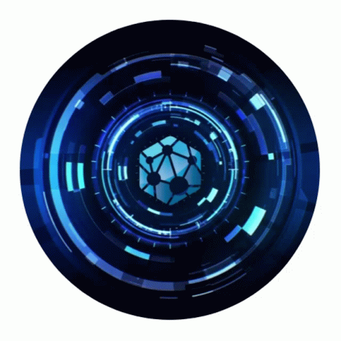 A dynamic blue circle with a glowing, rotating cube featuring a network pattern, representing the Kot Kols logo.