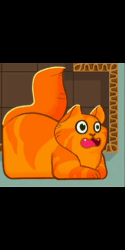An animated orange cat with wide eyes and an open mouth looks surprised or shocked.