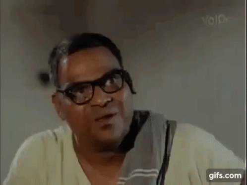 Kota Srinivas Rao, wearing glasses and a towel, smiles and laughs, followed by an image of the goddess Laxmi.
