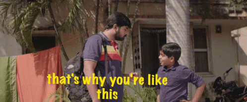 Koushik and Kowshik in a scene from Ee Nagaraniki Emaindi, with the caption 'that's why you're like this'.