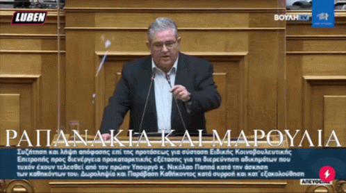 Dimitris Koutsoumpas delivers a speech in the Greek Parliament, addressing a proposal for a special committee.