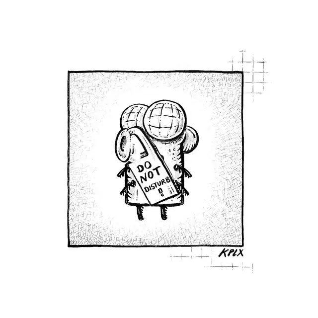 A black and white drawing of a cockroach named Gerd with a thought bubble saying 'uiuiui'.