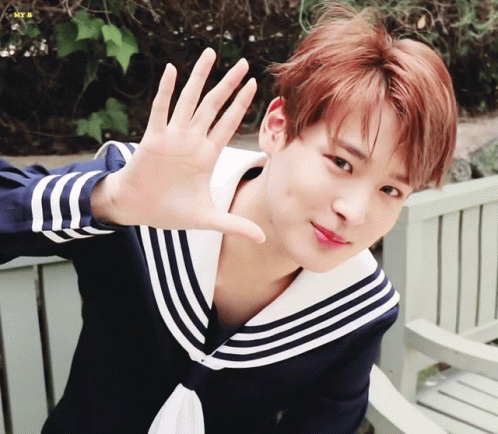 Cho Seungyoun from X1 waves hello to the camera with a friendly smile while wearing a stylish sailor suit.