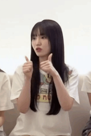 Nana from Woo!ah! giving a cheerful thumbs up during her appearance on Queendom Puzzle.