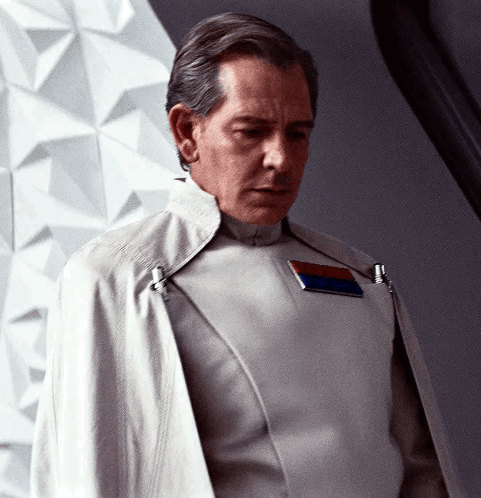 a man in a white uniform has a badge on his chest that says " commander "