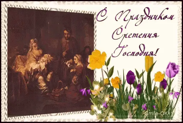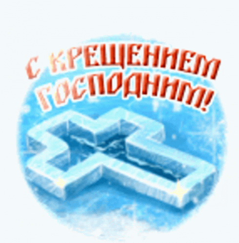 An animated greeting for Epiphany, featuring a sparkling ice cross and the Russian text 'С Крещением Господним!'