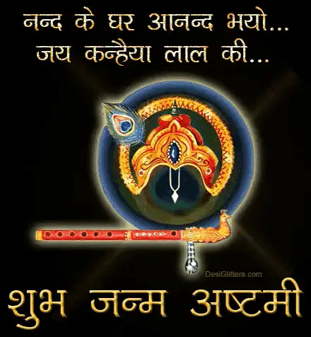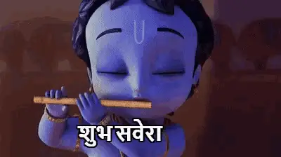 Adorable baby Krishna, adorned with a peacock feather, playing the flute alongside a peacock.