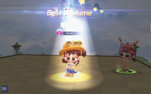 A character named Kordel in KartRider Rush Plus wins the 'Best Costume' award, celebrated with confetti.