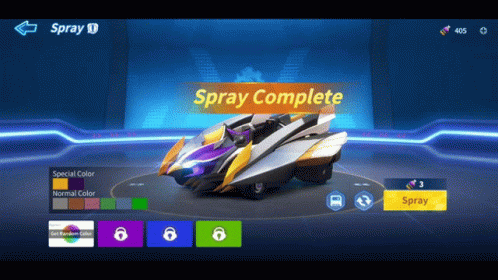 Customizing a car with different spray colors in the mobile racing game KartRider Rush Plus.
