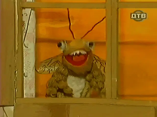 Man in a cockpit making a funny face with headphones on, from the Russian show 'Крутое пике'.