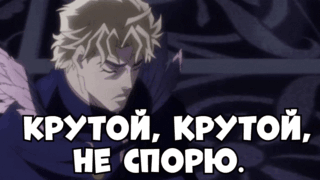 Anime character Dio Brando with the Russian meme phrase 'КРУТОЙ, КРУТОЙ, НЕ СПОРЮ.'
