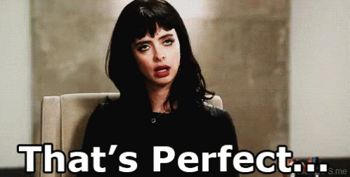 Krysten Ritter delivers a sarcastic eye roll with the caption 'That's Perfect...' expressing mock approval or exasperation.