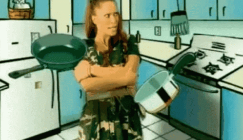 Ksenija Pajcin in her 'Vrti Mi Se' music video, appearing in a cartoon kitchen and then a bedroom.