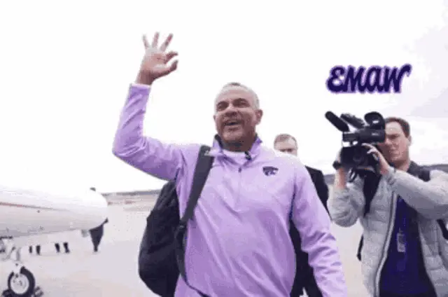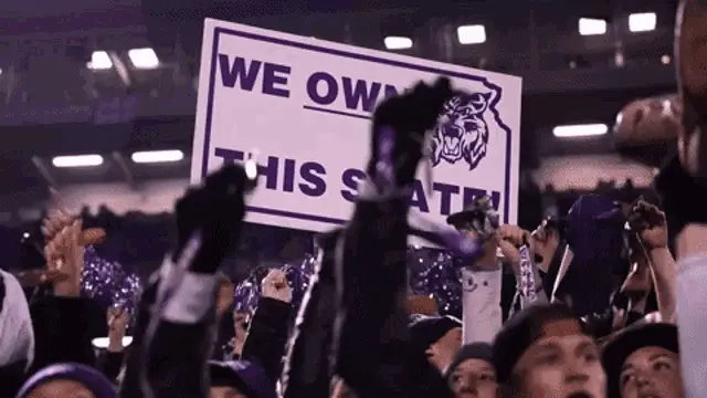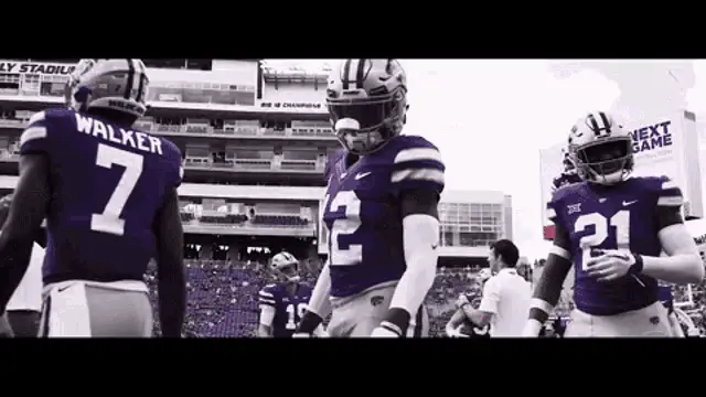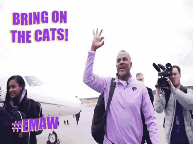 Markquis Nowell of K-State basketball celebrates on court, flexing his arm after a play.