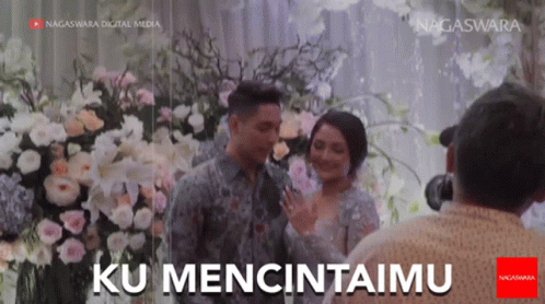 A couple shares a romantic moment at their wedding, symbolizing love and commitment, likely from a music video by Siti Badriah or Rph.