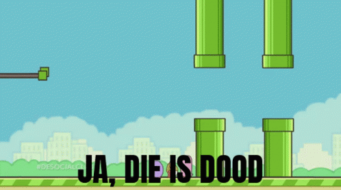 Dr. Mario in Flappy Bird style declares "Ja, die is dood" (Yes, he is dead) in this iconic internet meme.