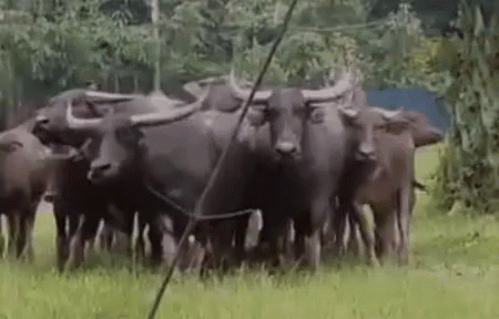A herd of water buffalo stands in a grassy field, with 'Kumpul Kebo' text overlay.