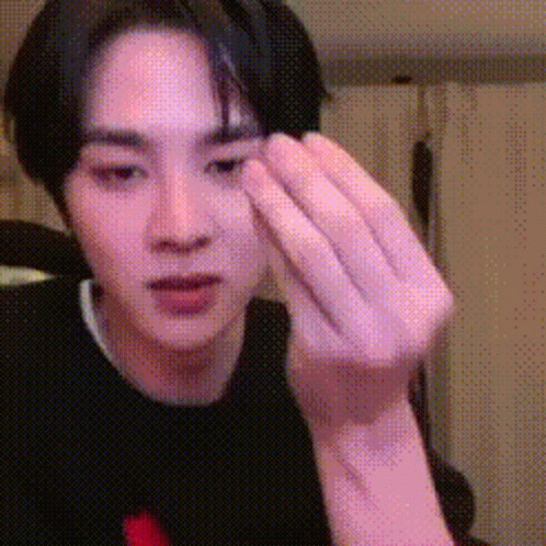 Kun WayV making a cute hand gesture, looking directly at the camera with a soft expression.