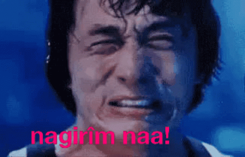 Jackie Chan's face contorted in intense crying, with the Kurdish text "nagirîm naa!" (I don't cry!) overlaid.