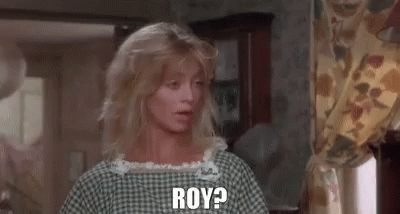 Goldie Hawn as Joanna/Annie in Overboard, looking concerned and asking 'Roy?'.
