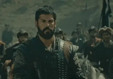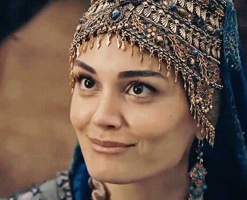 Alaaddin and Gonca from Kurulus Osman share a tender moment, captured in a close-up with Gonca's ornate headpiece.