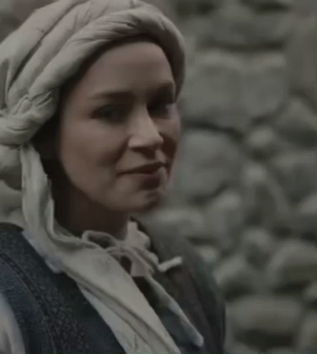 Aygul from Kurulus Osman smiles warmly, wearing a traditional headwrap and vest.