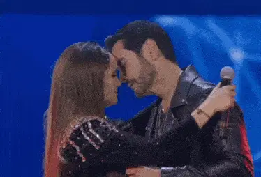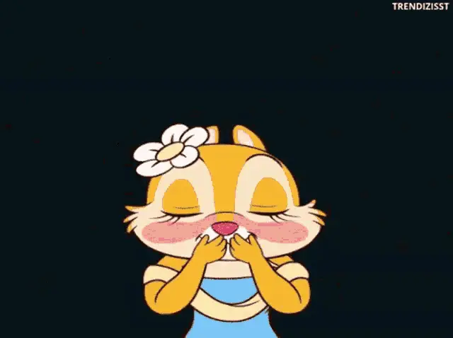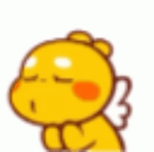 Yellow cartoon angel character making sweet kissing and smiling faces.