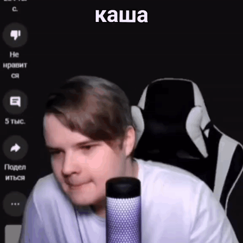 Kussia, a streamer, reacts with funny expressions to the Russian word 'каша' (porridge/mess) on screen.