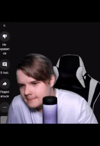 Kussia making a 'sigma' facial expression while sitting in front of a microphone.