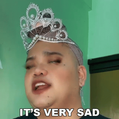 Kuwaii22 (Kuwaiitv) wearing a crown and makeup, expressing sadness with the 'It's Very Sad' meme.