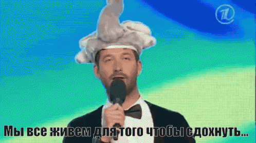 KVN team Stantsiya Sportivnaya and Kozhoma perform, with the caption 'We all live to die...' visible.