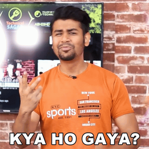 Abhishek Sagar asks 'Kya Ho Gaya?' (What happened?) while gesturing expressively in an orange t-shirt.