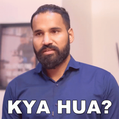 Sanju Sehrawat, a man with a beard, wearing a blue shirt, with the text "Kya Hua?" (What happened?) on screen.