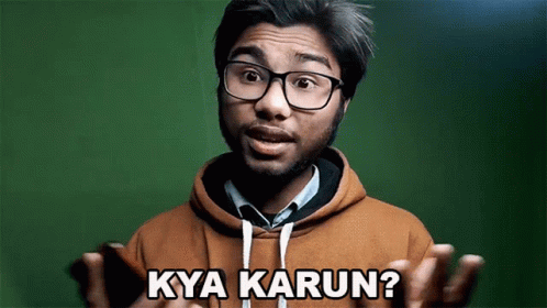 Sachin Saxena, wearing glasses and a hoodie, asks 'Kya Karun?' (What should I do?) with a confused expression.