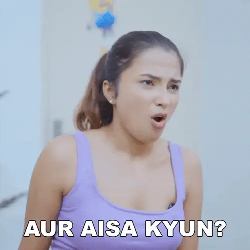 Vibhu Varshney, also known as Guddu Bhaiya, asks 'Kyun?' with an expressive look, wearing a colorful shirt.