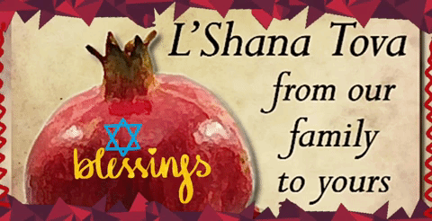 A festive L'Shana Tova greeting for Rosh Hashanah, wishing blessings from one family to another.