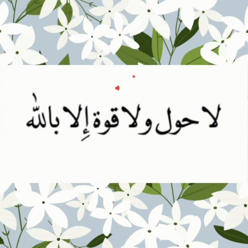Arabic phrase 'La hawla wa la quwwata illa billah' on a floral background with hearts.