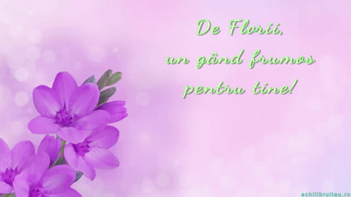A Romanian greeting card for Palm Sunday ("Florii") with purple flowers and "La mulți ani!" message.