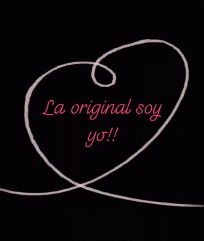 A simple animation featuring a white heart outline appearing and disappearing, with the Spanish text 'La original soy yo!!' (I am the original!!) in pink.