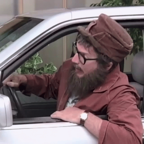 Popa Char from La Petite Vie, portrayed by Claude Meunier, sitting in a car and gesturing.