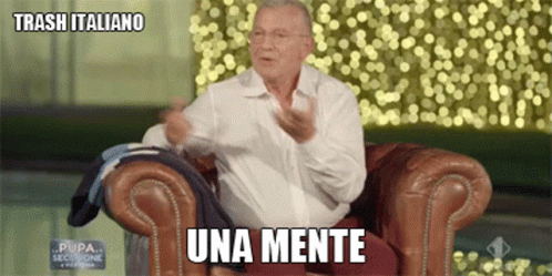 Aldo Busi, from La Pupa E Il Secchione, declares "Una Mente Inutile" (A Useless Mind) with a dismissive gesture.