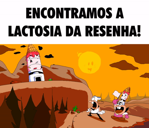 a cartoon scene with the words encontramos a lactosia da resenha on the bottom