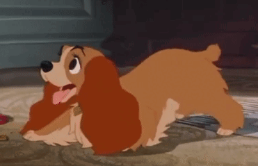 Lady from Disney's Lady and the Tramp is excited, wagging her tail playfully with her tongue out.