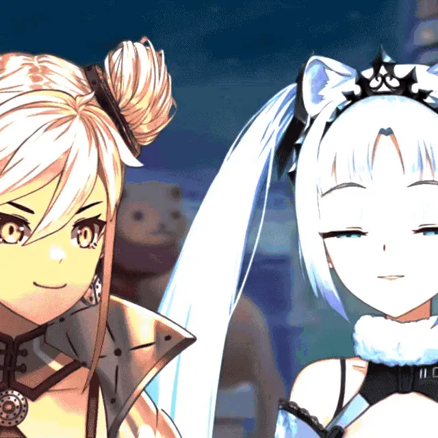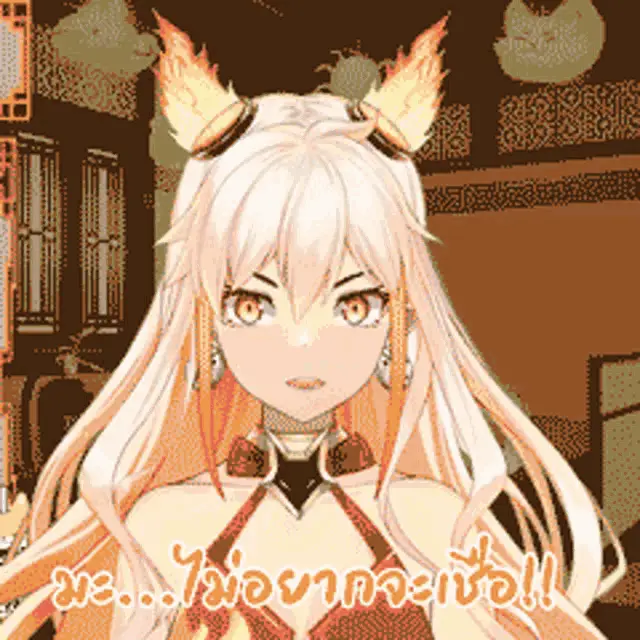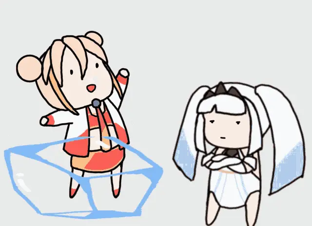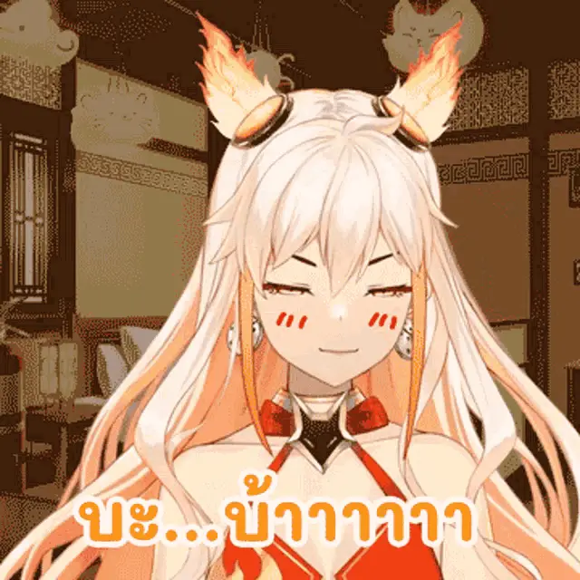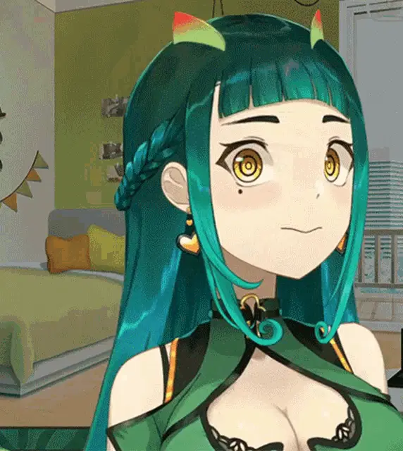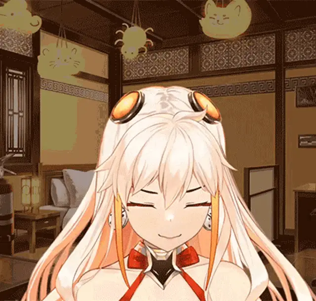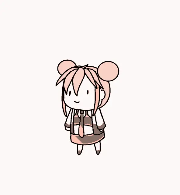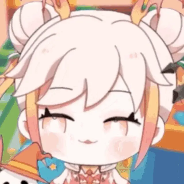 Lafy from Isekai Pixela shows a cute expression, smiling with eyes closed before opening them wide.