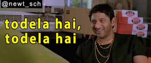 Arshad Warsi as Circuit from 'Lage Raho Munna Bhai' smiles and claps, with the phrase 'dela hai' on screen.