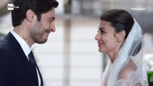 Alessandra Mastronardi and Lino Guanciale as Alice Allevi and Claudio Conforti share a tender moment at their wedding.